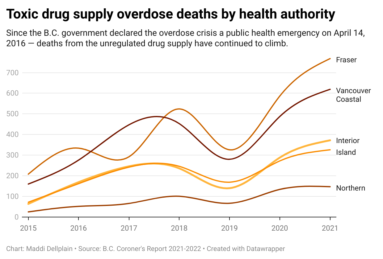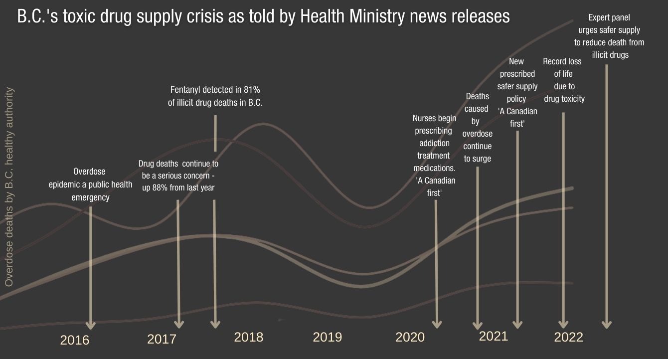 Over the past year, the province has touted several policy changes aimed at addressing the crisis, such as additional funding for existing federal safe supply projects and authorizing nurses to prescribe addiction treatment medications. But deaths from drug-related poisoning continue to surge.