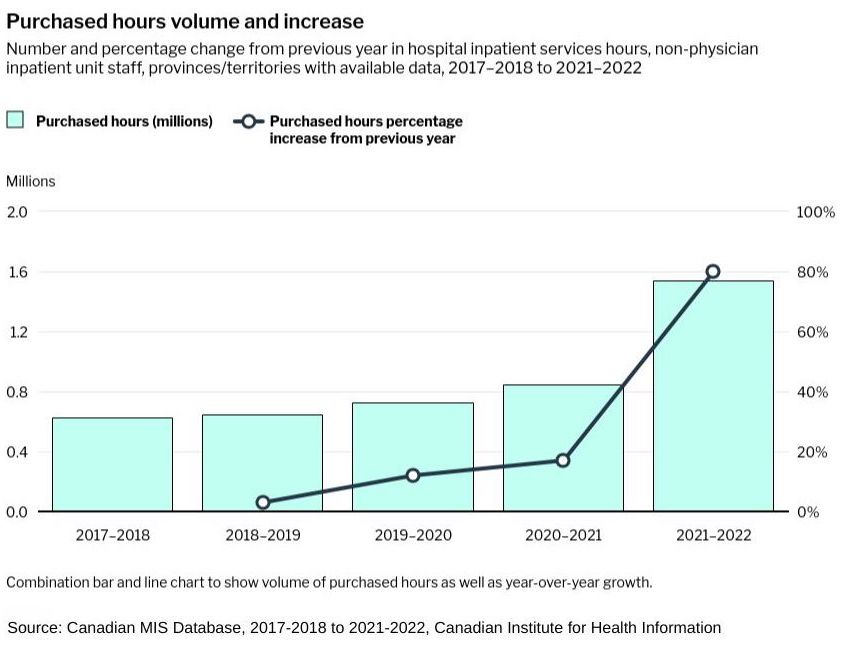 With a higher workload comes more injury. People get hurt doing patient lifts in the wrong way because they’re rushed, Mehra explains, or a care worker lifts a patient by themselves when protocol requires a two-person lift, “because there are no other staffers around to help them.” The latest available data from the Canadian Institute of Health Information (CIHI) reported a 17 per cent year-over-year increase in sick days among health workers from 2021-2022, compared to 3 per cent average increases in the four previous years.